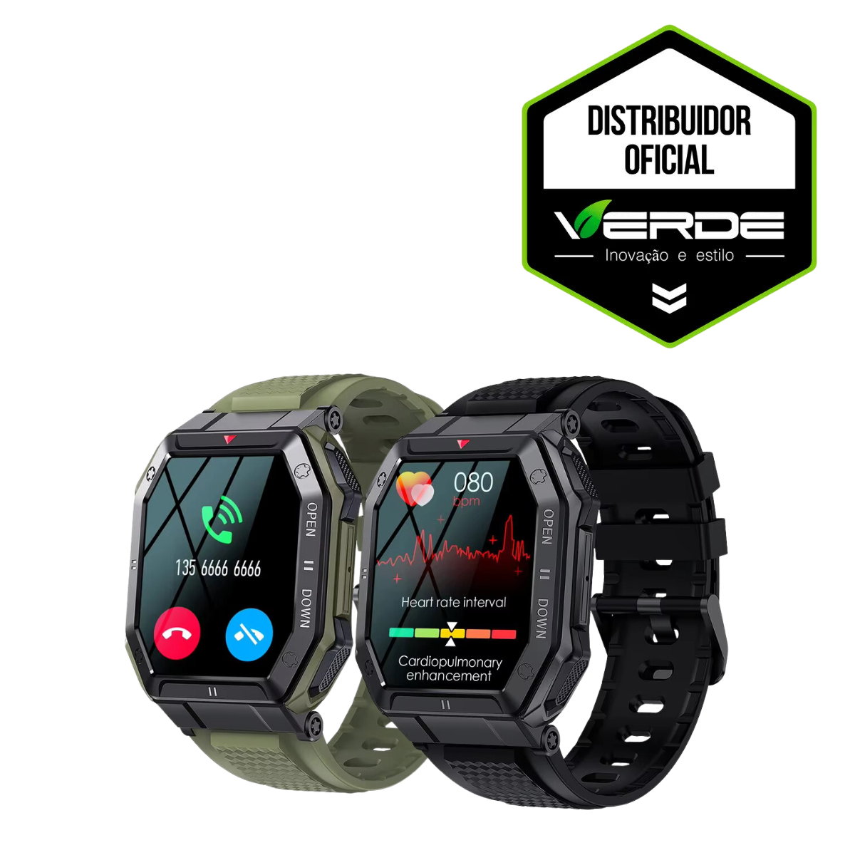O Smartwatch com Monitor Cardíaco da Verde é uma solução robusta e elegante para quem procura um dispositivo versátil, resistente e moderno. Disponível nas cores preto e verde, ele combina funcionalidades avançadas com um design inovador, ideal tanto para atividades esportivas quanto para o uso diário. Além de resistente à água, este modelo conta com a funcionalidade de realizar e receber chamadas, tornando-se um companheiro prático e completo para o seu dia a dia.